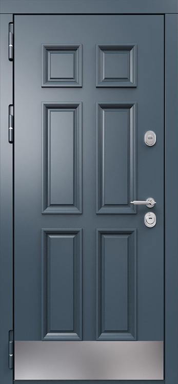 Дверь стальная МДФ эмаль №563 — это удачное сочетание надежной металлической основы и аккуратной декоративной отделки. Каркас из профильной трубы и стальной лист толщиной 2 мм обеспечивают прочность и устойчивость к взлому, а ребра жесткости повышают общий ресурс эксплуатации. Важной особенностью модели является наличие терморазрыва в коробке и полотне: конструкция эффективно препятствует промерзанию зимой, исключает появление конденсата и сохраняет тепло в помещении. Панели МДФ с ПВХ-покрытием, использованные с обеих сторон, защищены от влаги и мелких механических повреждений, благодаря чему дверь долго сохраняет привлекательный внешний вид. Два контура резинового уплотнителя дополнительно усиливают защиту от сквозняков и уличного шума. Такая дверь органично подходит для частных домов, квартир и офисов, сочетая в себе надежность стали и практичность современной отделки. Дверь стальная МДФ эмаль №563 от производителя: быстрое изготовление и монтаж в Троицке, индивидуальные размеры, широкий выбор материалов и фурнитуры, официальная гарантия до 10 лет.