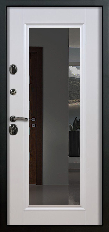 Металлическая входная дверь с зеркалом внутри №1 создана как универсальное решение для дома, квартиры или офиса, где важны и безопасность, и комфорт. Каркас выполнен из прочной профильной трубы с металлическим листом толщиной 2 мм и рёбрами жёсткости, что обеспечивает устойчивость к механическим воздействиям и долгий срок службы. Снаружи дверь покрыта порошковой окраской, стойкой к атмосферным влияниям и царапинам, а изнутри отделана МДФ с ПВХ-покрытием, которое сохраняет свежий вид даже при интенсивной эксплуатации. Встроенное зеркало превращает полотно в практичный элемент интерьера: оно визуально расширяет пространство прихожей и избавляет от лишних предметов мебели. Два контура уплотнителей защищают от пыли и сквозняков, а блокираторы усиливают общую надёжность конструкции. Модель не оснащена терморазрывом, зато отличается продуманным балансом практичности и доступной цены, оставаясь удобным вариантом для повседневного использования. Металлическая входная дверь с зеркалом внутри №1 от производителя: быстрое изготовление и монтаж в Троицке, индивидуальные размеры, широкий выбор материалов и фурнитуры, официальная гарантия до 10 лет.