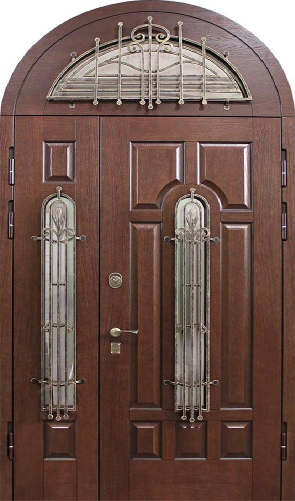 Арочные конструкции всегда придают входу выразительность и особый статус, а если добавить две створки и стеклянные вставки, дверь превращается в центральный элемент фасада. Натуральное дерево в отделке подчеркивает солидность и гармонично сочетается с металлом, из которого выполнено основание: каркас и полотно из профильных труб и стальной лист толщиной 2 мм обеспечивают прочность и долговечность. Для удобства и безопасности используются два замка разного типа — сувальдный и цилиндровый, оба с тремя ригелями, что делает взлом крайне затруднительным. Двухстворчатая арочная дверь со стеклом в частный дом №14 может изготавливаться любого размера и адаптироваться под архитектуру конкретного здания. Возможна установка дополнительных элементов: зеркало, стеклопакет, кованые детали или даже видеодомофон. Резиновое уплотнение по двум контурам защищает от сквозняков, а возможность выбора отделки и фурнитуры открывает простор для индивидуального дизайна. Двухстворчатая арочная дверь со стеклом в частный дом №14 от производителя: быстрое изготовление и монтаж в Троицке, индивидуальные размеры, широкий выбор материалов и фурнитуры, официальная гарантия до 10 лет.