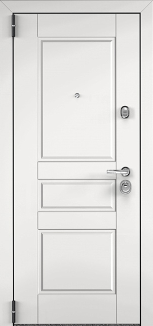 Белая металлическая дверь входная для дома №33 выделяется своим свежим и современным обликом. Универсальный белый цвет делает её уместной как в частном коттедже, так и в квартире или офисе, визуально добавляя простора и подчеркивая аккуратность фасада или интерьера. Конструкция двери основана на стальном листе толщиной 2 мм и усилена профильными трубами, что гарантирует надежность и устойчивость к нагрузкам. Важная особенность модели — наличие терморазрыва в полотне и коробке: благодаря этому дверь не промерзает в зимний период, исключается конденсат и сохраняется комфорт внутри помещения. Внешняя и внутренняя отделка выполнена из МДФ с ПВХ-покрытием, которое защищает поверхность от влаги и механических повреждений, сохраняя первозданный вид надолго. Два контура уплотнителя обеспечивают герметичность и дополнительную защиту от сквозняков. Эта дверь удачно сочетает эстетику и практичность, создавая надежный вход в любое жилище. Белая металлическая дверь входная для дома №33 от производителя: быстрое изготовление и монтаж в Троицке, индивидуальные размеры, широкий выбор материалов и фурнитуры, официальная гарантия до 10 лет.