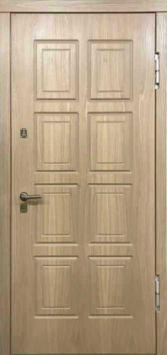 Дверь входная в частный дом №44 сочетает в себе надёжность стальной основы и практичность декоративной отделки. Каркас и полотно из профильной трубы с листом металла толщиной 2 мм обеспечивают устойчивость к нагрузкам, а рёбра жёсткости повышают общую прочность конструкции. В коробке и полотне предусмотрен терморазрыв, который предотвращает промерзание и помогает сохранять тепло внутри помещения, что особенно важно для частных домов и коттеджей. Снаружи и внутри дверь облицована МДФ-накладками, материалом, устойчивым к мелким повреждениям и удобным в уходе, благодаря чему изделие долго сохраняет презентабельный вид. Двойной контур уплотнителей блокирует сквозняки и влагу, создавая дополнительный комфорт. Для безопасности установлены два замка — сувальдный Просам и цилиндровый Мосрентген, оба с трёхригельной системой. Модель легко адаптируется под пожелания заказчика: можно изменить отделку или добавить декоративные элементы, превращая дверь в индивидуальное решение для дома, офиса или квартиры. Дверь входная в частный дом №44 от производителя: быстрое изготовление и монтаж в Троицке, индивидуальные размеры, широкий выбор материалов и фурнитуры, официальная гарантия до 10 лет.