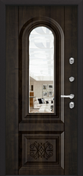 Дверь тёплая входная в частный дом №49 создана для тех, кто ценит надёжность и практичность без лишних компромиссов. Конструкция из профильных труб и стали толщиной 2 мм обеспечивает прочность и устойчивость к взлому, а двойной контур уплотнителя защищает от сквозняков и влаги. Особенность модели — встроенное зеркало, которое не только добавляет удобства, но и визуально расширяет пространство прихожей. Снаружи и внутри дверь отделана МДФ-накладками, материалом, который хорошо переносит повседневные нагрузки, не боится царапин и сохраняет привлекательный вид долгие годы. Замковая система сочетает сувальдный и цилиндровый механизмы от российских производителей, что делает вход максимально безопасным. Модель подходит для установки как в частный дом, так и в квартиру или офис, а возможность комбинировать отделку и дополнять конструкцию стеклопакетами или ковкой открывает простор для индивидуального дизайна. Дверь теплая входная в частный дом №49 от производителя: быстрое изготовление и монтаж в Троицке, индивидуальные размеры, широкий выбор материалов и фурнитуры, официальная гарантия до 10 лет.