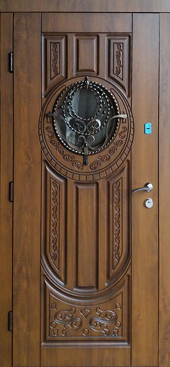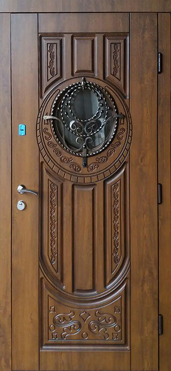 Владельцы коттеджей ценят входные конструкции, которые одинаково подчеркивают статус и защищают от любых внешних факторов. Здесь удачно сочетаются прочный металл и массив дуба, придающий поверхности солидность и благородство. Натуральное дерево сохраняет цвет и текстуру долгие годы, устойчиво к механическим повреждениям и перепадам температуры. Внутри конструкции скрыт стальной каркас толщиной 1,5 мм с ребрами жесткости и противосъёмными блокираторами, что делает полотно практически неприступным. Особое преимущество — терморазрыв коробки и полотна, благодаря которому дверь не промерзает даже в сильные морозы и сохраняет тепло в доме. Именно на этом контрасте надежности и эстетики выделяется железная дверь со стеклом и ковкой №21, украшенная изящными декоративными элементами. Три контура магнитного уплотнения обеспечивают герметичность, а система замков Kale Kilit повышает уровень безопасности, при этом конструкция допускает установку современных умных решений и дополнительных декоративных опций. Железная дверь со стеклом и ковкой №21 от производителя: быстрое изготовление и монтаж в Троицке, индивидуальные размеры, широкий выбор материалов и фурнитуры, официальная гарантия до 10 лет.