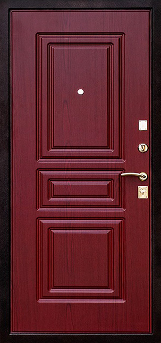 Строгая, практичная и надёжная конструкция делает эту модель удобной для установки в квартире или офисе, где важны защита и долговечность. Каркас и полотно выполнены из профильной трубы, усилены стальным листом толщиной 2 мм и ребрами жёсткости, что обеспечивает устойчивость к нагрузкам и попыткам взлома. Снаружи дверь облицована ламинированными панелями, сохраняющими аккуратный вид даже при интенсивной эксплуатации, внутри — МДФ со шпоном, создающим ощущение уюта и солидности. Два контура уплотнителей защищают от сквозняков, при желании можно добавить шумо- и теплоизоляцию для большего комфорта. Дверь стальная с отделкой ламинат №7 укомплектована двумя надёжными замками российского производства, а при необходимости их легко заменить на более современные механические или электронные системы. Дверь стальная с отделкой ламинат №7 от производителя: быстрое изготовление и монтаж в Троицке, индивидуальные размеры, широкий выбор материалов и фурнитуры, официальная гарантия до 10 лет.