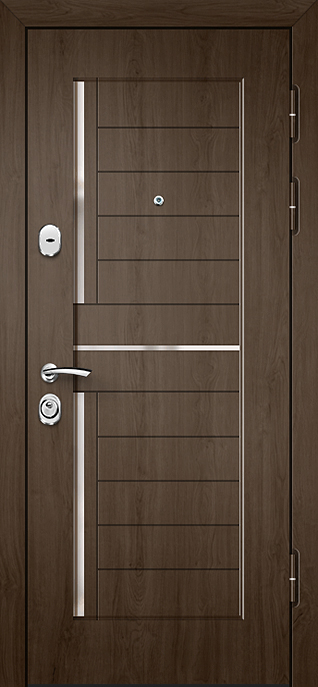 Глубокий оттенок венге всегда выглядит благородно и современно, а декоративная панель придаёт полотну завершённый стильный образ. Дверь МДФ цвета венге с внешней декоративной панелью №538 подходит для установки как в частных домах, так и в квартирах или офисах, где ценят сочетание надёжности и эстетики. Плиты МДФ отличаются прочностью, стойкостью к мелким механическим повреждениям и долго сохраняют первоначальный вид без потери насыщенности цвета. Конструкция выполнена на основе стального каркаса с листом металла толщиной 2 мм и рёбрами жёсткости, что обеспечивает высокий уровень прочности. Два контура уплотнения повышают комфорт эксплуатации, защищая от сквозняков. Дополнительно дверь можно оснастить шумо- и теплоизоляцией, зеркалом, стеклопакетом или коваными элементами, сделав её не только практичной, но и индивидуальной деталью интерьера. Дверь МДФ цвета венге с внешней декоративной панелью №538 от производителя: быстрое изготовление и монтаж в Троицке, индивидуальные размеры, широкий выбор материалов и фурнитуры, официальная гарантия до 10 лет.