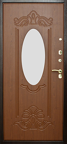 Конструкция двери включает прочный каркас из профильной трубы 50х25 мм и металлическое полотно толщиной 2 мм, что обеспечивает долговечность и защиту от внешних повреждений. Шумоизоляция, выполненная с использованием минваты или пенопласта, эффективно снижает уровень шума, создавая комфортную атмосферу внутри. Резиновый уплотнитель с двумя контурами улучшает герметичность, а терморазрыв коробки и полотна способствует поддержанию стабильной температуры в помещении. Дополнительный элемент декора — зеркало, которое может стать акцентом в интерьере. Надежная система замков с блокираторами гарантирует безопасность.