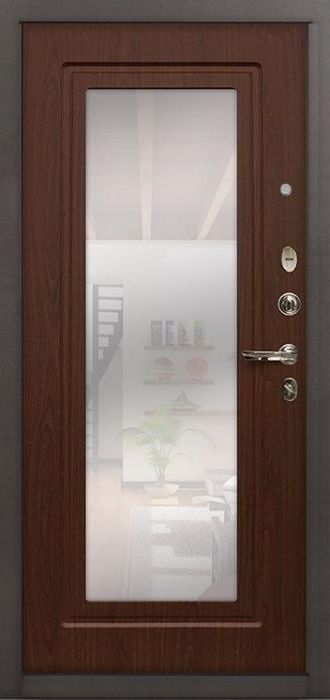 Входная дверь с зеркальными вставками №56 сочетает надежность металлической конструкции и удобство функционального декора. Зеркало не только украшает интерьер, но и делает помещение визуально просторнее, что особенно ценно для квартир и офисов. Для частного дома такая дверь добавляет практичности — всегда можно взглянуть на отражение, выходя на улицу. Отделка выполнена из панелей МДФ с ПВХ-покрытием, устойчивым к царапинам и мелким повреждениям, что обеспечивает долговечность и сохранение первоначального вида. Каркас собран из профильной трубы, усилен рёбрами жёсткости и металлическим листом толщиной 2 мм, благодаря чему дверь выдерживает серьёзные нагрузки и обеспечивает защиту от взлома. Два контура уплотнения препятствуют проникновению сквозняков и пыли, а резиновый уплотнитель сохраняет плотное прилегание полотна. Замковая система включает надежные российские механизмы Просам и Мосрентген, которые отличаются стабильной работой и высоким ресурсом. Дверь №56 — это прочность, удобство и современный дизайн в одной конструкции. Входная дверь с зеркальными вставками №56 от производителя: быстрое изготовление и монтаж в Троицке, индивидуальные размеры, широкий выбор материалов и фурнитуры, официальная гарантия до 10 лет.