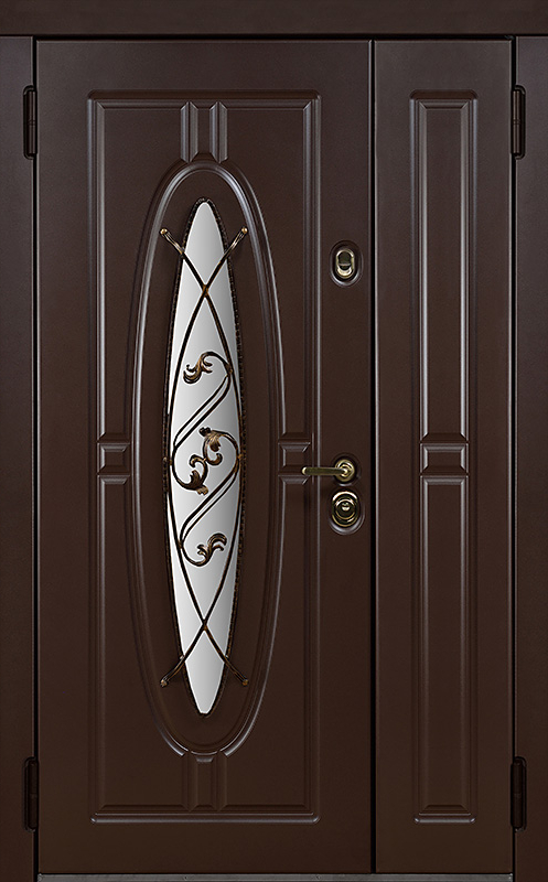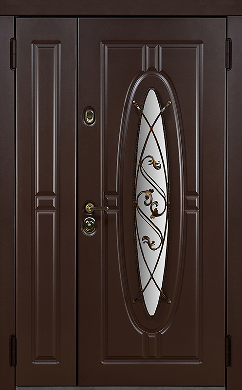 Двойная уличная дверь с овальным стеклом и художественной ковкой №14 — это уникальное сочетание функциональности и эстетики. Панели МДФ с ПВХ-покрытием, используемые как для внешней, так и для внутренней отделки, обладают высокой стойкостью к внешним воздействиям, сохраняя свой внешний вид на долгие годы. Внешний декор в виде художественной ковки придаёт двери особый шарм, подчеркивая её стиль и индивидуальность. Двойная уличная дверь с овальным стеклом и художественной ковкой №14 от производителя: быстрое изготовление и монтаж в Троицке, индивидуальные размеры, широкий выбор материалов и фурнитуры, официальная гарантия до 10 лет.