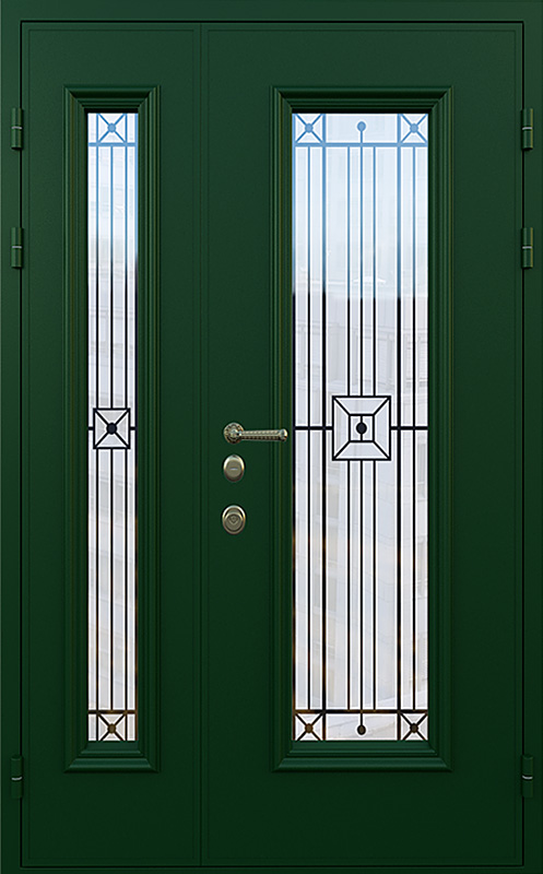 Зеленая полуторная дверь со стеклопакетом для частного дома №18 — это идеальный выбор для тех, кто хочет добавить в свой дом надежность и стиль. Элементы декора, такие как багет и ковка, придают двери элегантный вид, который идеально гармонирует с фасадом загородного дома. Панели МДФ с ПВХ-покрытием, использованные для внешней и внутренней отделки, обеспечивают высокую стойкость к механическим повреждениям и внешним воздействиям, сохраняя прекрасный внешний вид на долгое время. Зеленая полуторная дверь со стеклопакетом для частного дома №18 от производителя: быстрое изготовление и монтаж в Троицке, индивидуальные размеры, широкий выбор материалов и фурнитуры, официальная гарантия до 10 лет.