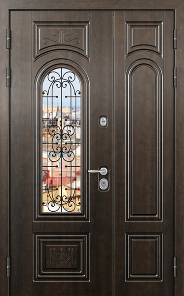 Двупольная стальная дверь со стеклопакетом и кованым узором №24 станет отличным выбором для тех, кто ценит не только безопасность, но и стиль. Внешняя и внутренняя отделка выполнены из МДФ, что придает двери элегантный и современный вид, а также обеспечивает высокую устойчивость к механическим повреждениям и износу. Стеклопакет и кованые элементы добавляют изысканности и уникальности, при этом сохраняя прочность конструкции. Двупольная стальная дверь со стеклопакетом и кованым узором №24 от производителя: быстрое изготовление и монтаж в Троицке, индивидуальные размеры, широкий выбор материалов и фурнитуры, официальная гарантия до 10 лет.