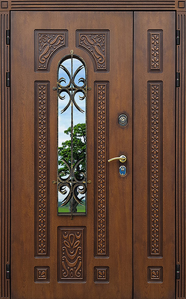 Двойная входная дверь с большим стеклом и ковкой для дома №25 сочетает в себе стиль и надежность, предлагая великолепное решение для вашего дома. Внешняя и внутренняя отделка выполнены из панелей МДФ с ПВХ, что придает двери долговечность и устойчивость к механическим повреждениям, а также способствует легкости ухода. Стеклопакет в комбинации с изысканным кованым узором создаёт не только эстетическое наслаждение, но и позволяет улучшить светопроникновение в помещении. Двойная входная дверь с большим стеклом и ковкой для дома №25 от производителя: быстрое изготовление и монтаж в Троицке, индивидуальные размеры, широкий выбор материалов и фурнитуры, официальная гарантия до 10 лет.