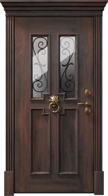 Дверь с надежной фурнитурой и коваными элементами на стекле №18