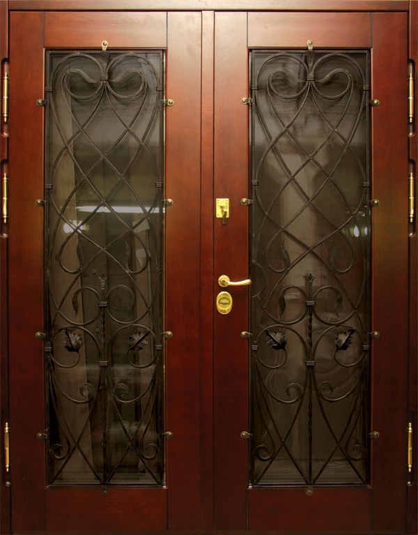 Входная дверь со стеклопакетом и патиной для загородного дома белая №29