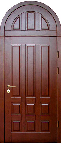 Высокая арочная входная дверь массив №26 идеально подчеркнет величие вашего частного дома или коттеджа. Внешняя и внутренняя отделка из массива дерева придают двери естественную красоту и изысканность. Каркас и полотно выполнены из профильной трубы 50х25 мм, с дополнительной жесткостью благодаря ребрам из профильных труб 40х25 мм и металлическому листу толщиной 2 мм. Элементы конструктивной прочности обеспечат долговечность, а два контура резинового уплотнителя гарантируют надежную герметичность. Несмотря на отсутствие терморазрыва, дверь остается надежной и безопасной, дополнительно оснащенной блокираторами для защиты. Эта дверь станет настоящим акцентом в вашем доме, сочетая эстетическую привлекательность и отличную защиту. Высокая арочная входная дверь массив №26 от производителя: быстрое изготовление и монтаж в Троицке, индивидуальные размеры, широкий выбор материалов и фурнитуры, официальная гарантия до 10 лет.