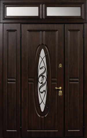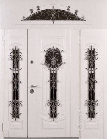 Высокая входная дверь с коваными элементами и фрамугой №5